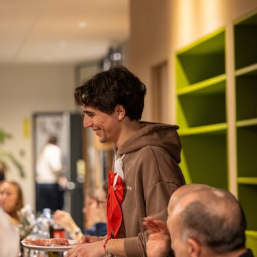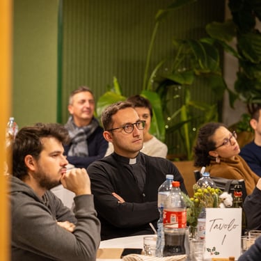 Abbiamo immaginato e poi organizzato questa serata guidati da questa intuizione. Corriamo costantemente a “seimila chilometri l’ora” e la mente è sovraffollata di mille pensieri e altrettante preoccupazioni; dobbiamo però ricordarci che la meta ultima del nostro frenetico andare rimane sempre la stessa: “rimanere a bocca aperta davanti al Bambinello”. L’augurio che vogliamo farci è quello di riuscire a riservare un tempo disteso, e di qualità, per i nostri amici e famigliari, per i più piccoli e poveri non come mera abitudine sociale, ma come risposta ad un’intima esigenza del cuore umano: consegnarci gli uni nelle mani degli altri per lasciarci reciprocamente “riparare” e ritrovare le nostre relazioni restaurate. Con un sorriso, un vivace scambio di opinioni, un abbraccio, magari una barzelletta o un messaggio gentile.