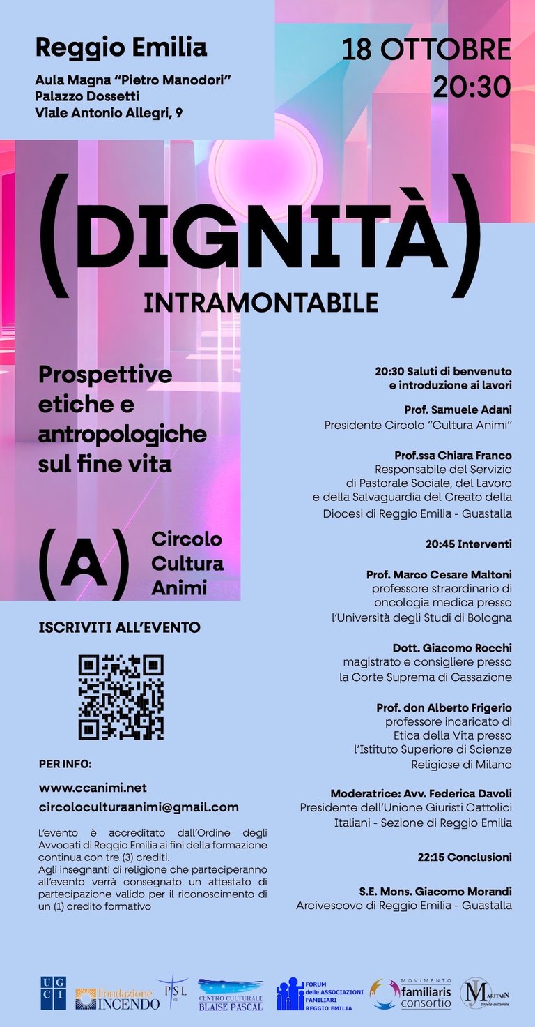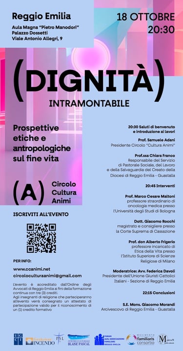 Il nostro circolo ha proposto per il 18 ottobre 2024 il convegno ”Dignità intramontabile: prospettive etiche e antropologiche sul fine vita”.
